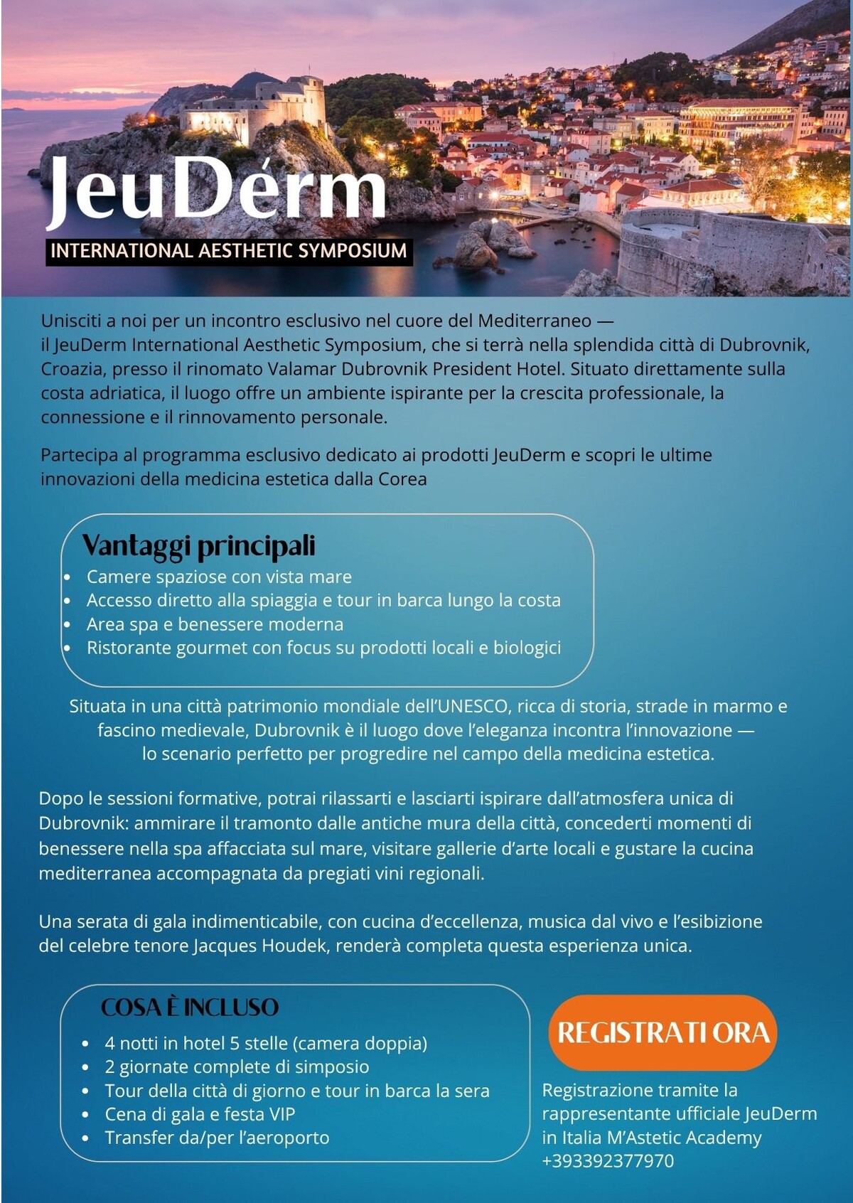 Unisciti a noi per l’esclusivo Simposio nel cuore del Mediterraneo, nella mozzafiata città di Dubrovnik, Croazia, presso il rinomato Valamar Dubrovnik President Hotel.